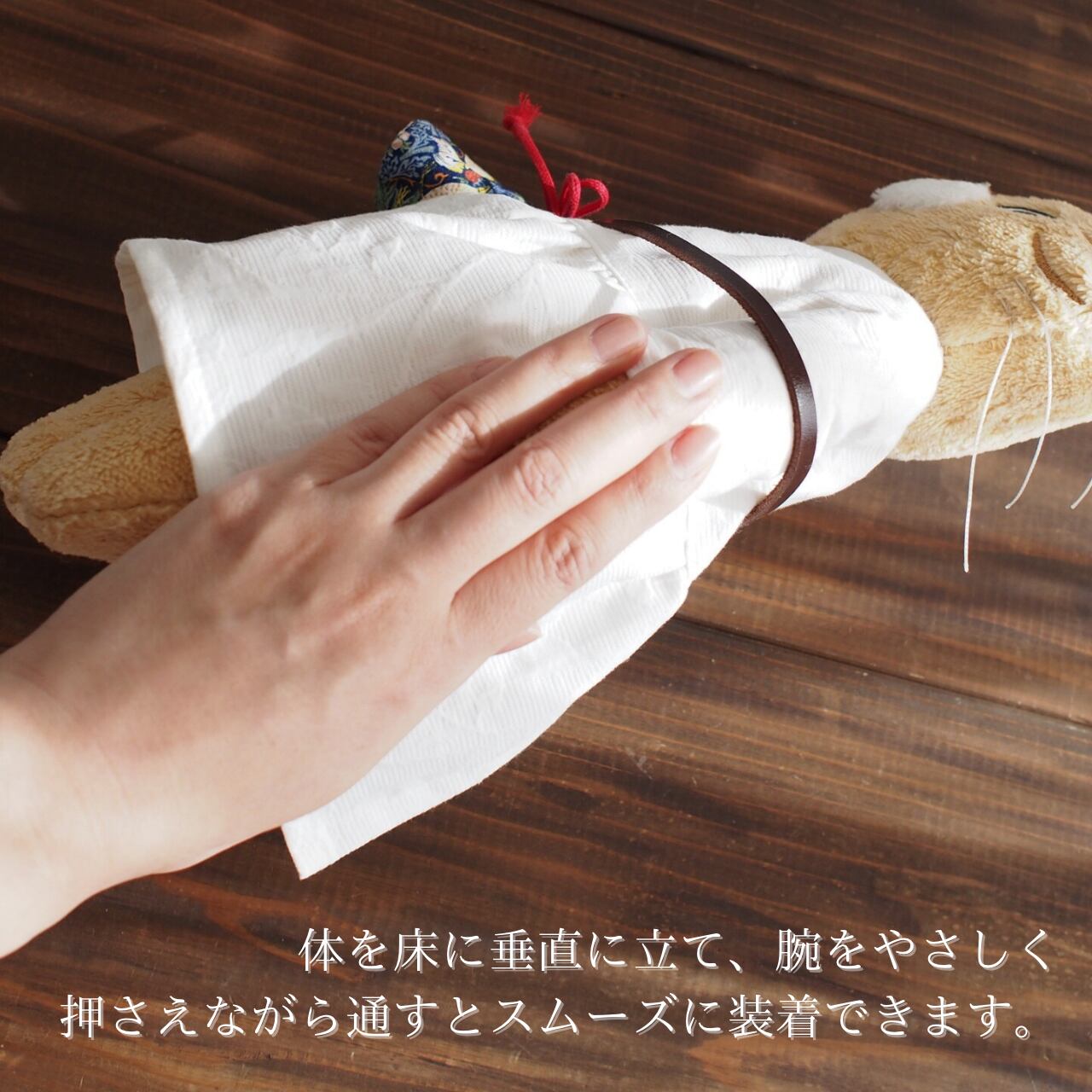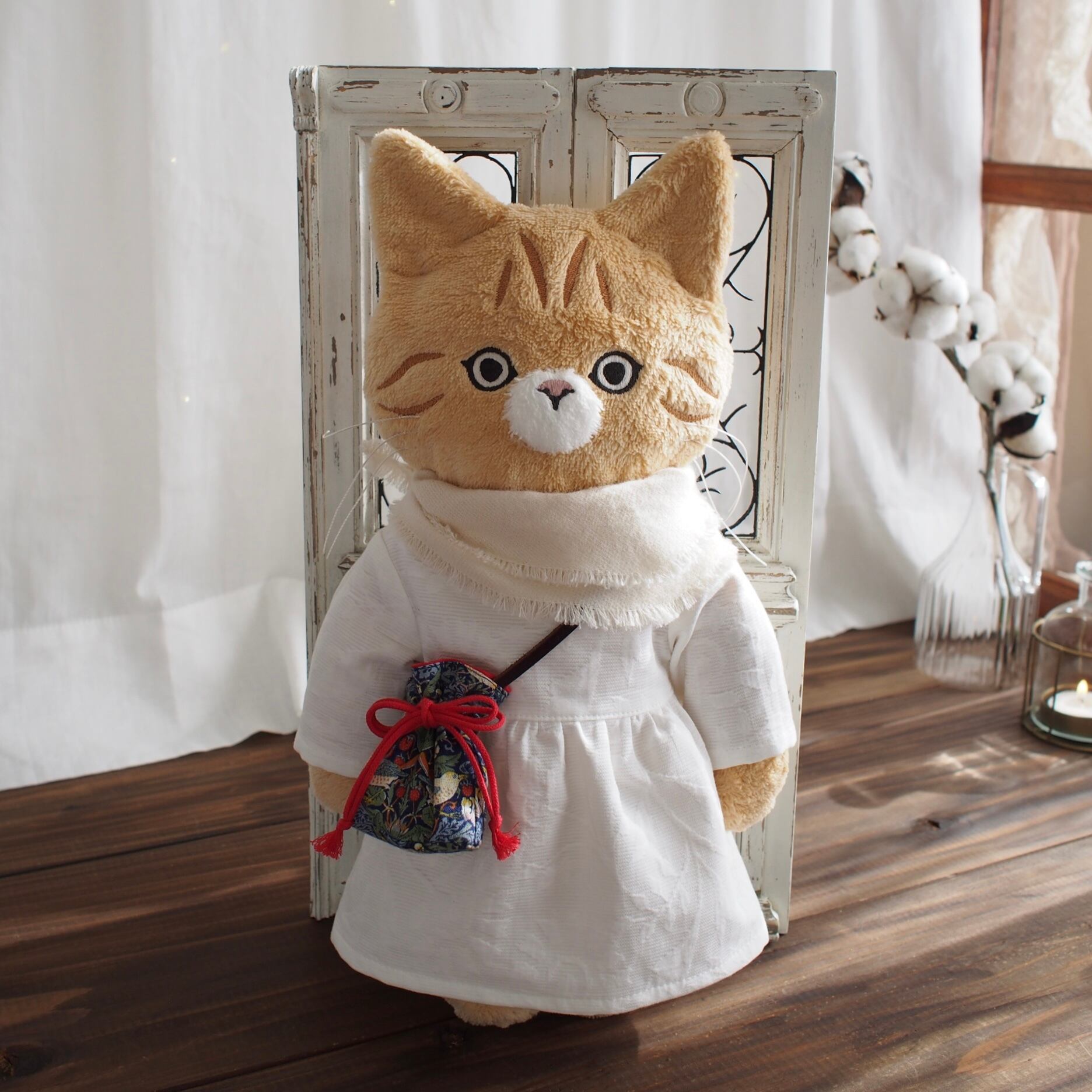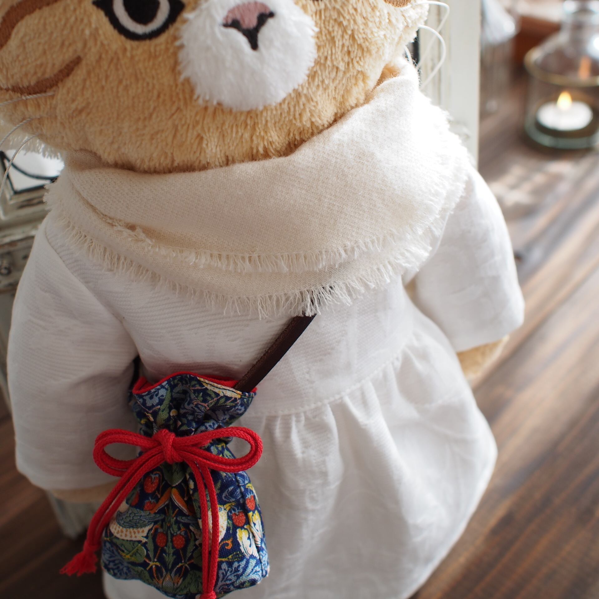 もうふぐるみによく似合う形を目指し、型紙を何度も調整しながら丁寧に仕立てています。