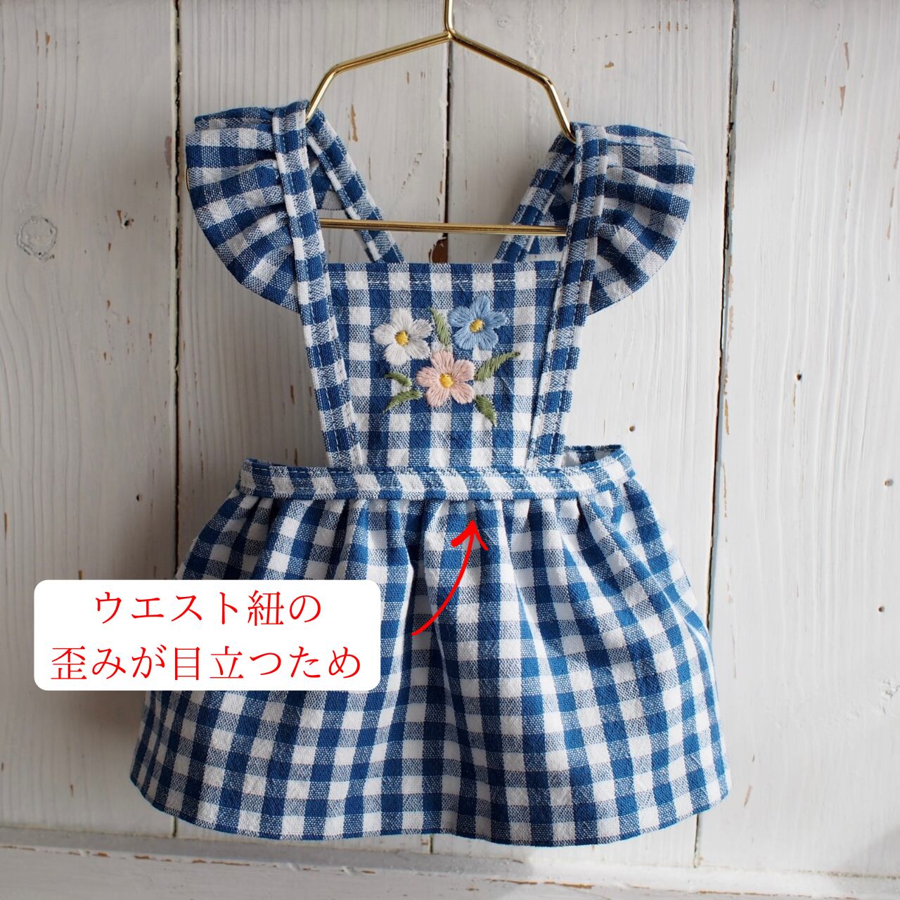 ウエスト紐の歪みが目立つためです。